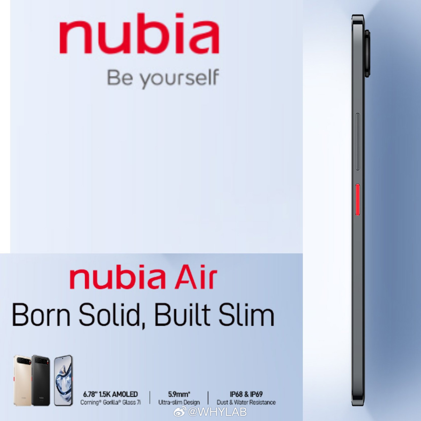 努比亚 Air 手机官方渲染图曝光,最薄处 5.9mm 的机身“塞入”5000mAh 电池